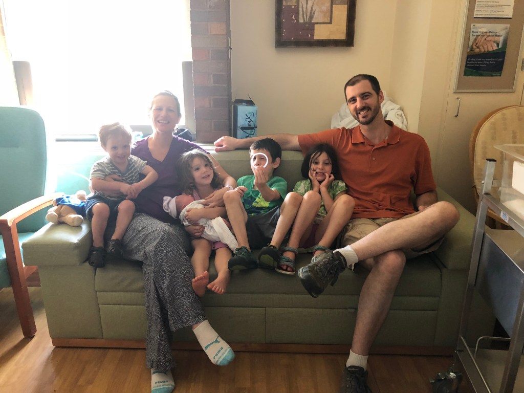 Those early labor signs started around noon. Paul and I went home briefly, but then I began having that nauseous labor feeling. We got the kids squared away at my parents’ house and headed to the hospital.